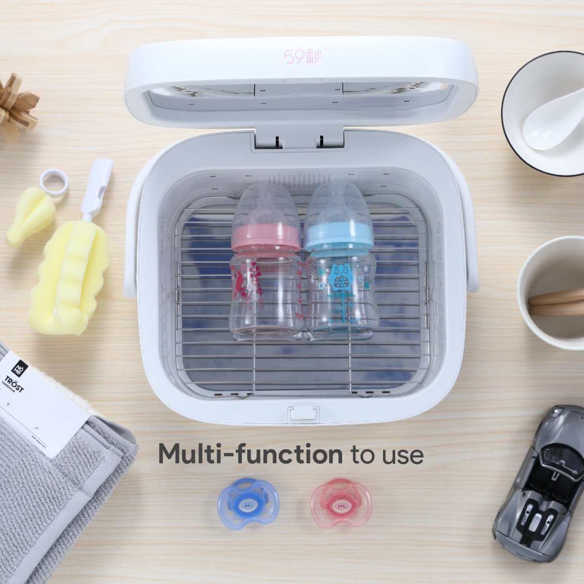 In this world full of germs and viruses are everywhere, it is very important to sterilize your essentials to prevent germs from spreading to your family. This Multi-purpose sterilizer is a great alternative to chemical cleaners. You simply have to put your stuff inside the box easily and effortlessly without consuming too much of your time. All it takes is 3 minutes!
